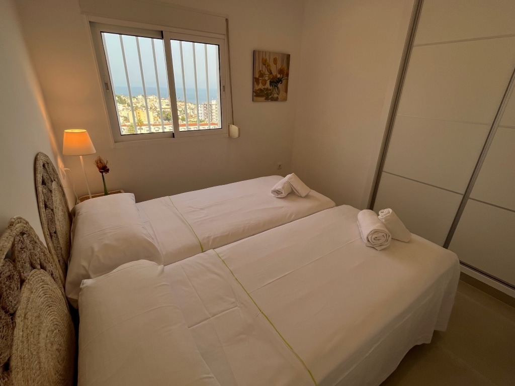 There is one king-size bedroom with ensuite bathroom and a further twin bedroom and second, shared bathroom. You will enjoy beautiful views over Nerja, the sea and to the Sierra Almijara mountains from all rooms and the terrace.